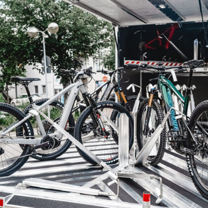 Mit unserem speziell für E-Bikes angefertigten Transportanhänger befördern wir mühelos bis zu 36 fahrbereite E-Bikes von A nach B, ohne dass sie beim Transport Schaden erleiden. Der zweifellos beste Fahrrad Anhänger der Welt. Die schweizer Verladetechnik überzeugt uns und die E-Bikes sind in Rekordzeit von 10 Minuten vollständig verladen. SCHWERELOS – ohne Muskelkraft!