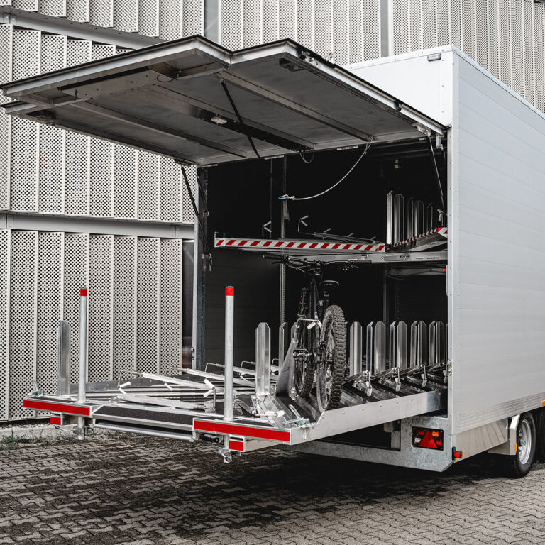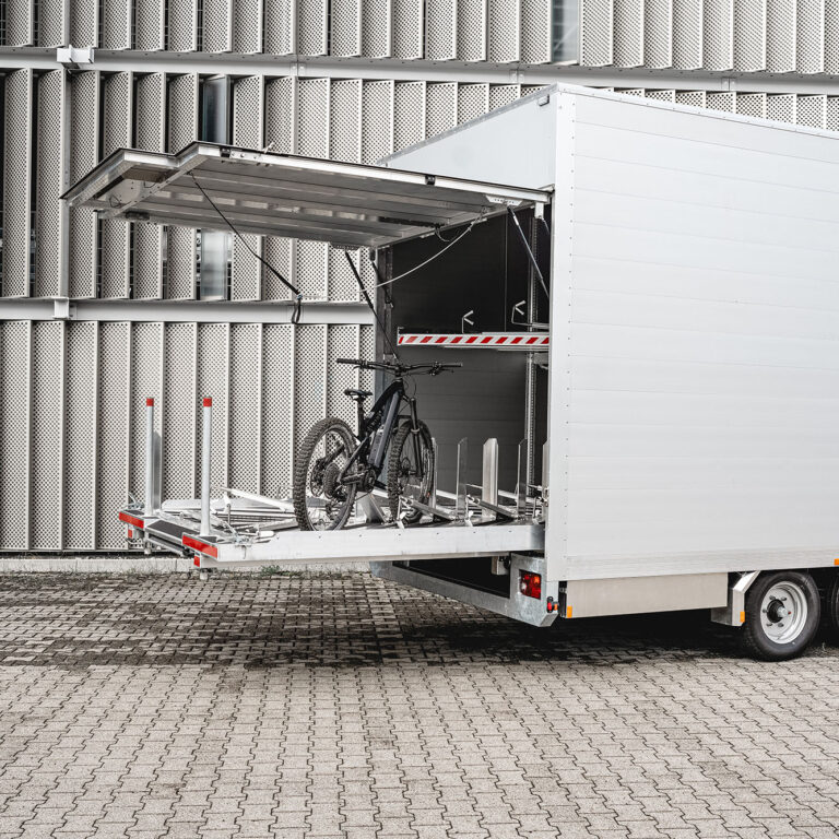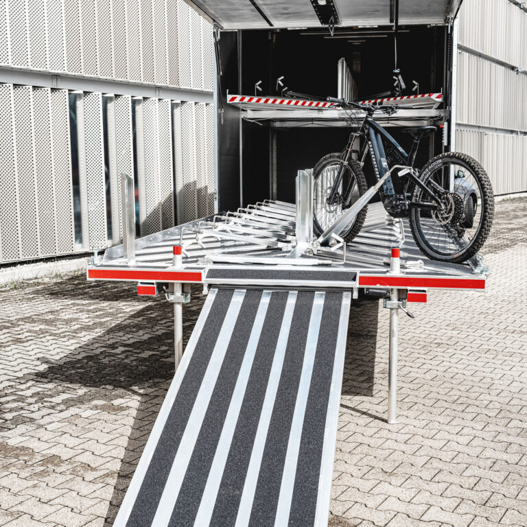 Die Laderampe ermöglicht das einfache Hinaufschieben der Räder.