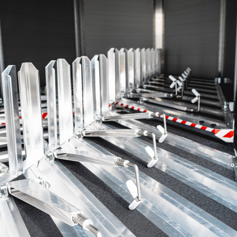 Die Sicherungsarme können an die Größe und Position der Räder angepasst werden.
