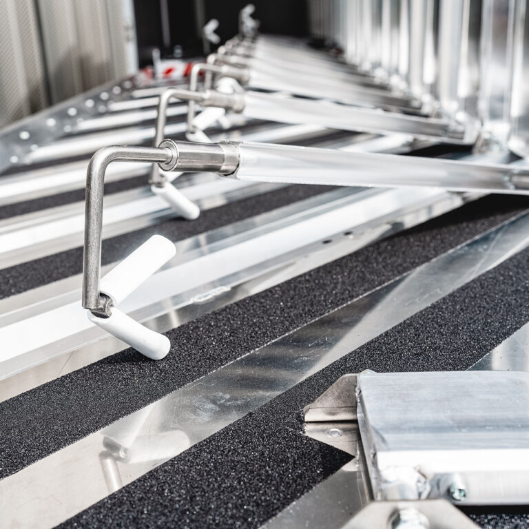 Eine rutschfeste Oberfläche auf der Rampe sorgt für sicheren Halt der Räder beim Schieben.